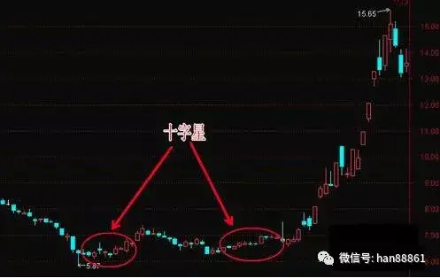 3、要判断十字星是底部十字星还是高位十字星,以第二天开盘价确认,如不破前一日十字星最低价,即为底部十字星;