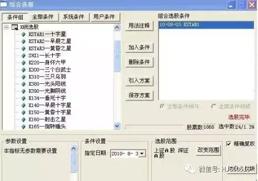 具体十字星选股如图示: